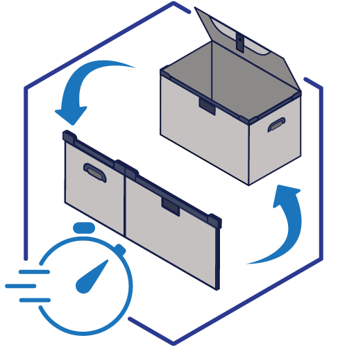 Unsere Klappboxen sind in Windeseile auf- und zugeklappt - damit sparen Sie Zeit und Nerven!