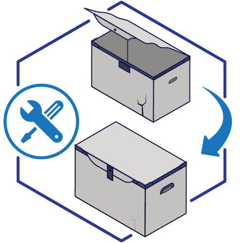 Ebenfalls zeichnet unsere Umzugsboxen die Möglichkeit zur Reparatur und Teileaustausch aus. Das verlängert ihre Lebensdauer erheblich und spart Ressourcen.